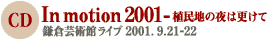 2001年9月21・22日。鎌倉芸術館で行なわれた「In Motion 2001 植民地の夜は更けて」のライブ・パフォーマンスがパッケージとなった。'スポークン・ワーズ'